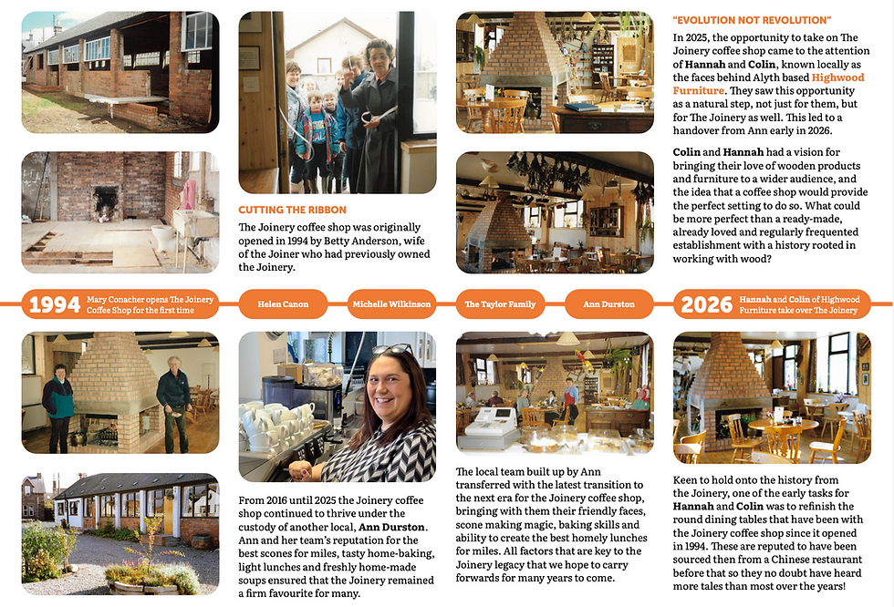 A much-loved café in nearby Meigle came onto the market. Its name? The Joinery. For Colin and Hannah, it felt like more than coincidence, it was an opportunity too perfect to ignore.